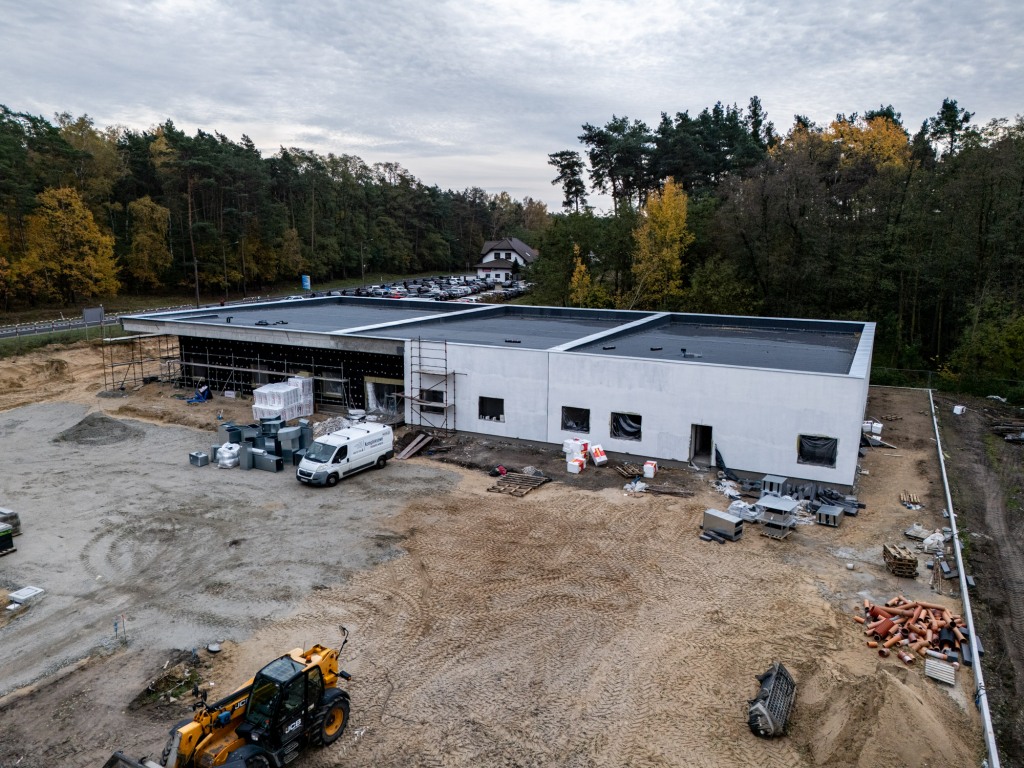 Trwa budowa przedszkola „Leśna Polana” w Karpicku. Na terenie inwestycji prowadzone są prace przy elewacji, wewnątrz montowana jest instalacja elektryczna i wentylacja oraz wykonywane są gładzie.