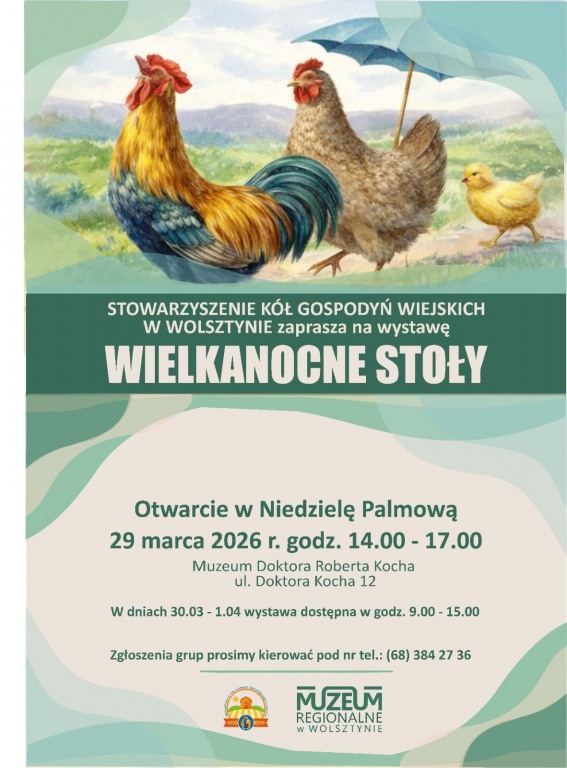 W Muzeum Doktora Roberta Kocha w Wolsztynie zaprezentowano wystawę „Wielkanocne Stoły”, przygotowaną przez Stowarzyszenie Kół Gospodyń Wiejskich Gminy Wolsztyn. Ekspozycja nawiązywała do świątecznych tradycji, prezentując dekoracje i potrawy znane z polskich domów.